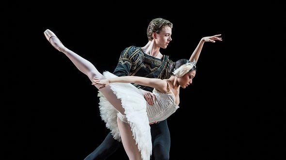 Image: Mason King and Maïlène Katoch performing an extract of Swan Lake in BRB2's 2023 tour. © Johan Persson.