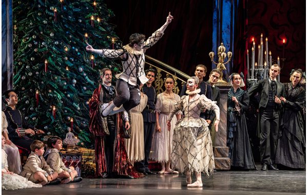 Lachlan Monaghan as Drosselmeyer and Artists of Birmingham Royal Ballet in the Party Scene.