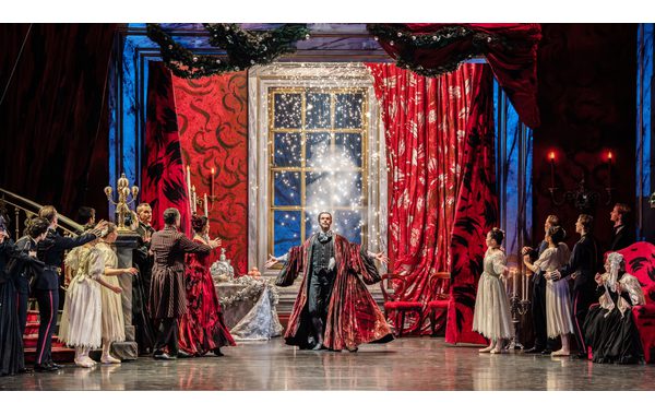 Lachlan Monaghan as Drosselmeyer and Artists of Birmingham Royal Ballet in the Party Scene.
